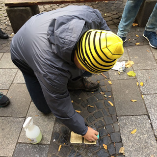 Nach dem gemeinsamen Start, teilte man sich in mehrere kleinere Teams auf und brachte insgesamt über 100 Stolpersteine in Dortmund wieder zum Glänzen.